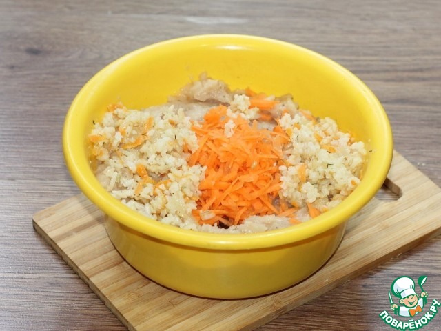 11. В формочку для запекания выкладываем рисовый гарнир.