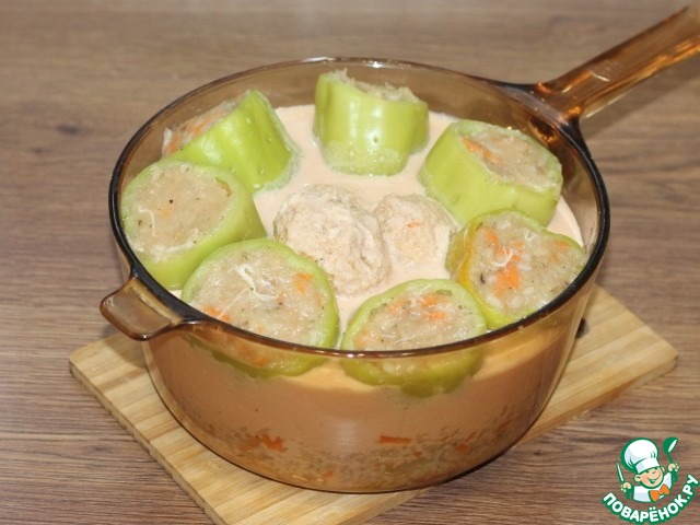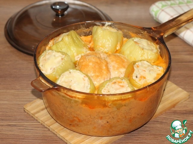 Рецепт «Перец, фаршированный мясом, под сырным соусом»: