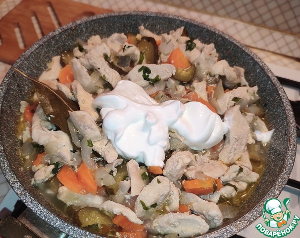 Когда времени не так много, а хочется вкусно накормить близких, куриное филе с морковью, солёными огурцами в сметане станет прекрасным вариантом сытного обеда или ужина и отлично подойдёт к любому гарниру.