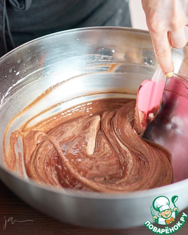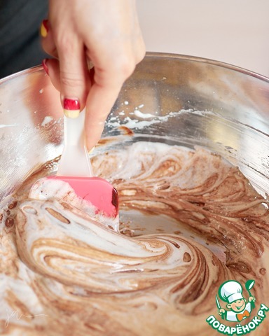 Утопить в массе замороженную вишню. Предварительно не размораживать! Можно взять свежую.