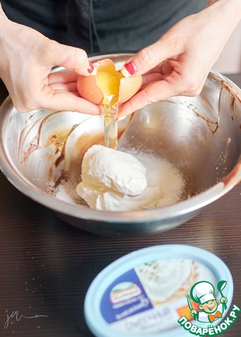 Для чизкейка смешать сахар, яйцо и творожный сыр.