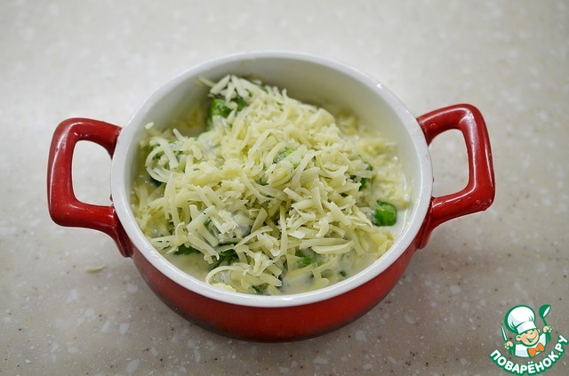 Посыпьте тертым сыром. Запекайте в духовке при 180 градусах около 15 минут.