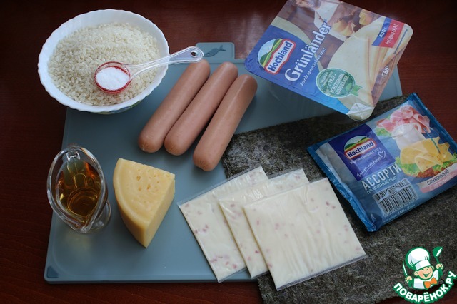 Для приготовления рисовых хот -догов, приготовьте необходимые ингредиенты.