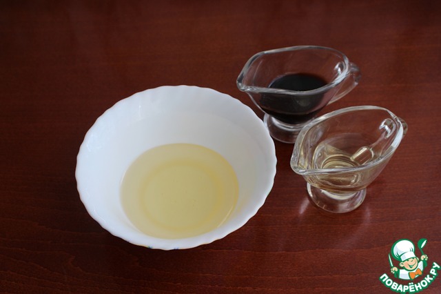 Для соуса смешайте мед, соевый соус и рисовое вино до однородности.