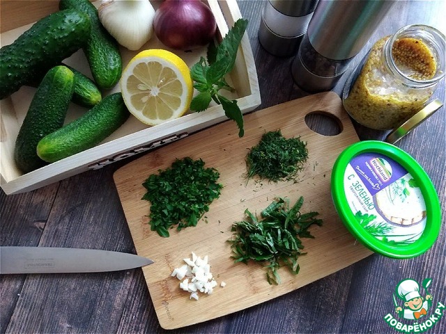 - Зелень (укроп, петрушка и мята) — 3 веточ.