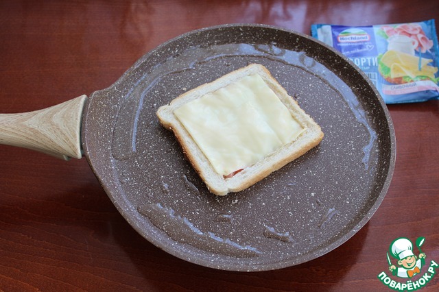 При необходимости еще раз переверните ломтик, чтобы он подрумянился со всех сторон. Таким образом приготовьте остальные бутерброды.