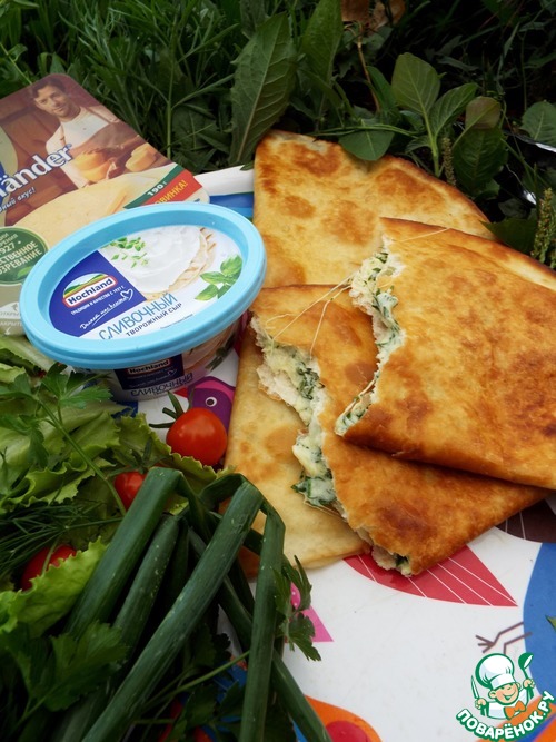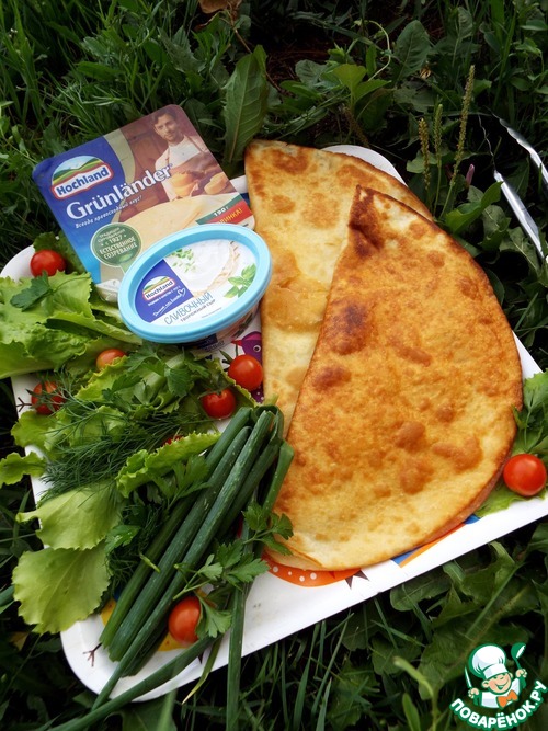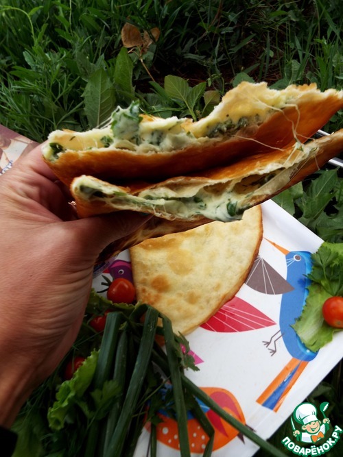 Рецепт «Ленивые чебуреки с сыром и зеленью»: