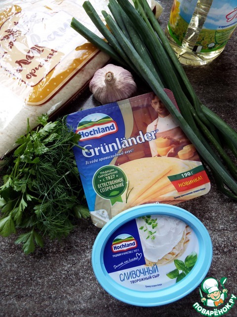 Ингредиенты для «Ленивые чебуреки с сыром и зеленью»: