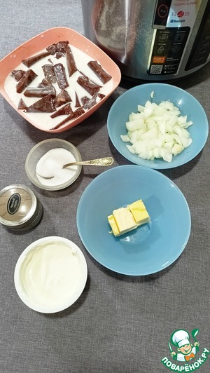 - Печень говяжья (Вымочить в молоке (300мл хватает) 30-50 минут) — 600 г