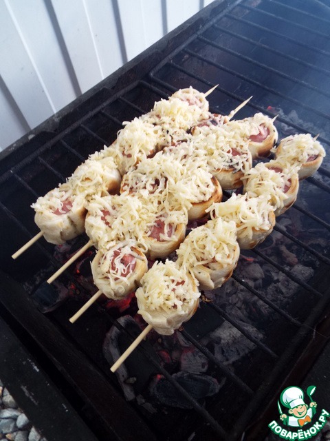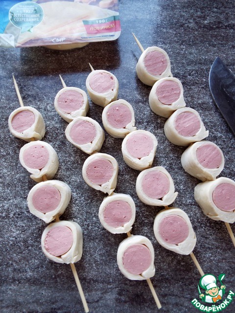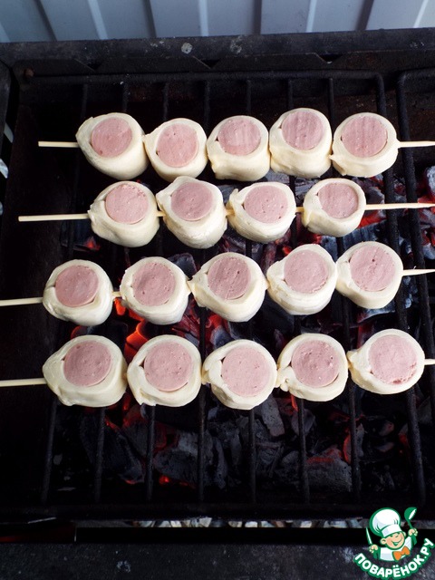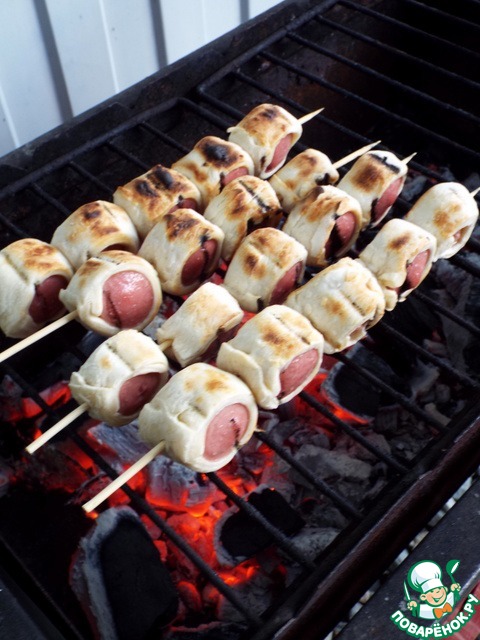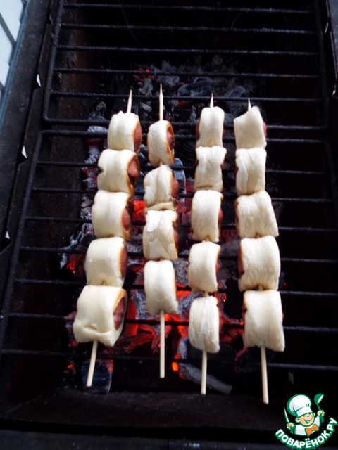Рецепт «Шашлычки "сосиски в тесте" с сыром»: