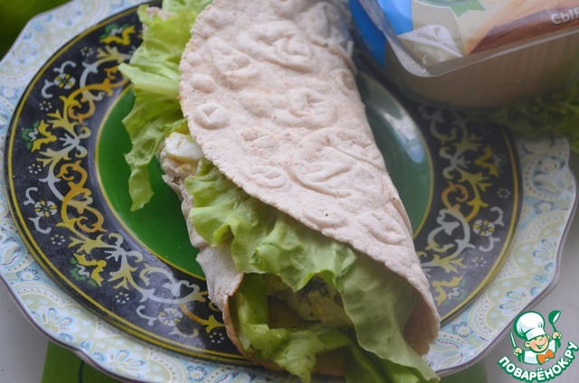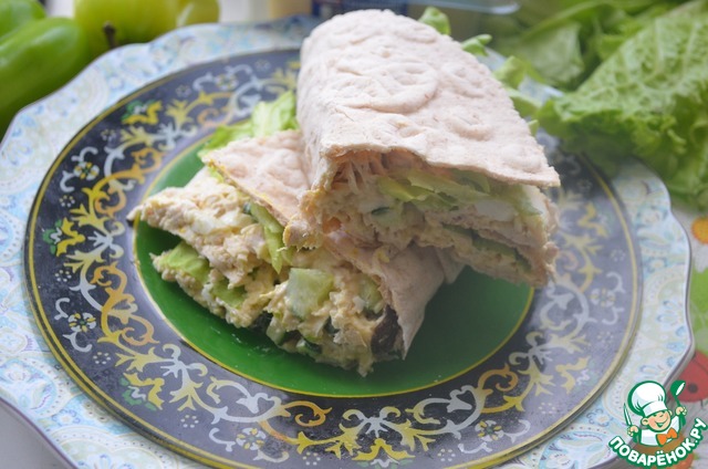 Рецепт «Лаваш с курицей, сыром и огурцом»: