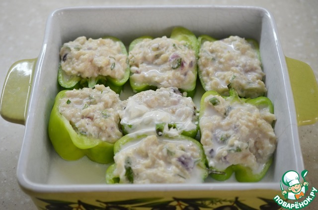 Рецепт «Фаршированные перцы, запеченные в молоке»: