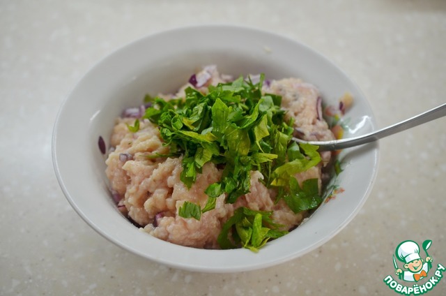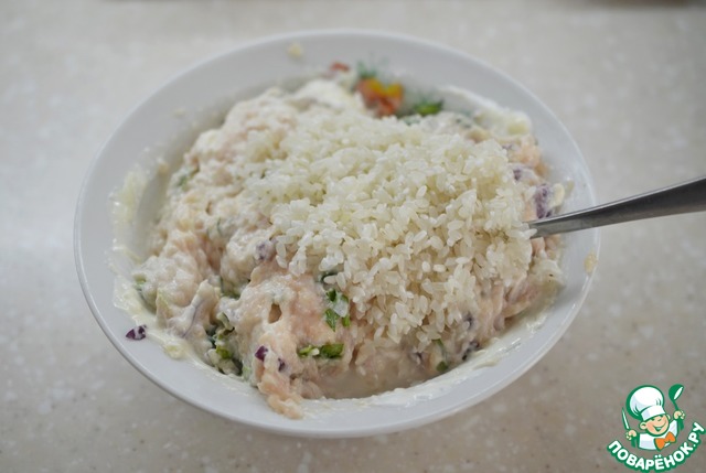 Промойте рис и добавьте к фаршу. Все хорошо перемешайте.