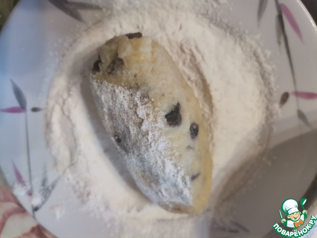 Формируем котлету с начинкой внутри, хорошо склеивая края и панируем в муке.