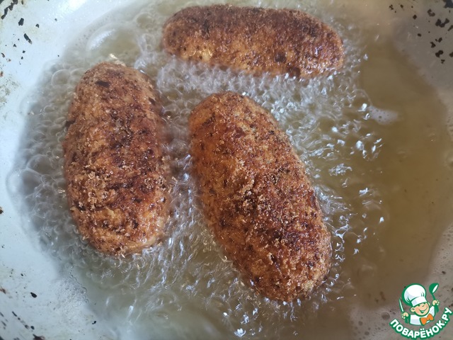 Обжариваем крокеты в кипящем масле до золотистой, хрустящей корочки. Затем выкладываем на салфетку чтобы впитался лишний жир.