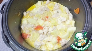 • Добавляем в чашу специи и сметану - Режим "Тушение" 10 минут.