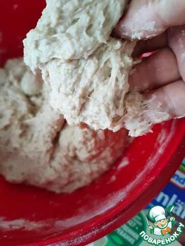 Вот такая структура теста. Оно очень липкое. Но муки добавлять не надо.