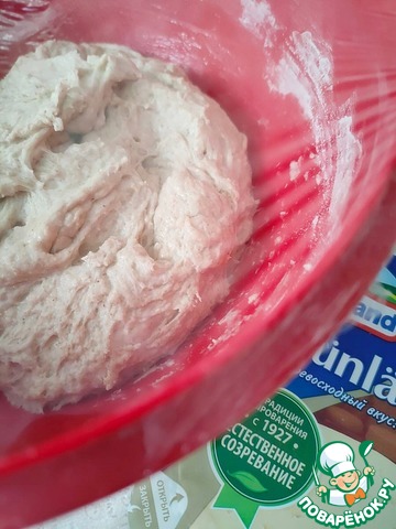Накройте миску с тестом пищевой плёнкой. Оставьте в теплом месте для подхода, примерно на полтора часа.