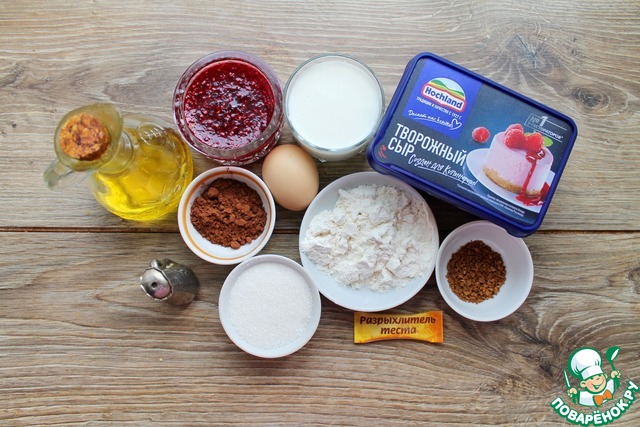 Подготовьте все необходимые ингредиенты для приготовления шоколадно-кофейных блинов с начинкой.