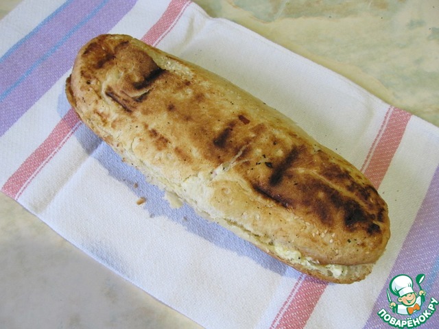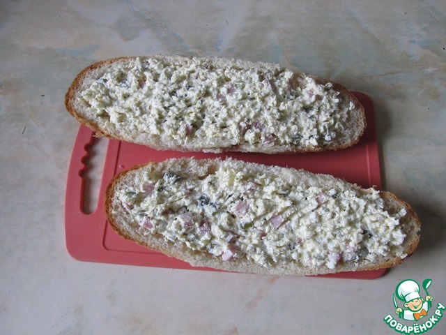 Рецепт «Закусочный багет с сыром и ветчиной»: