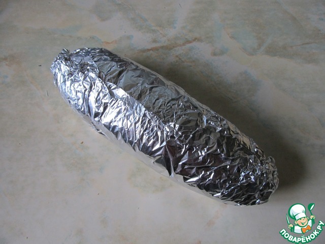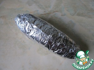 Остудить до комнатной температуры, убрать в холодильник на 8-10 часов или на ночь. Охлаждённый багет развернуть.