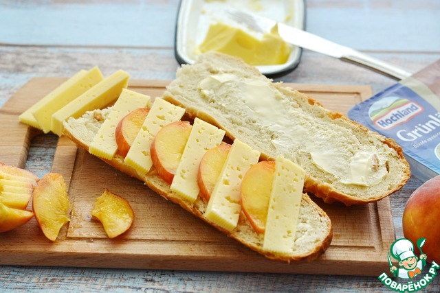 Рецепт «Горячий бутерброд с сыром и персиком»: