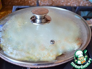 Затем накрыть крышкой, жарить ещё 2 минуты, огонь минимальный.