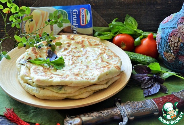 Рецепт «Лепешки с сыром, творогом и зеленью»: