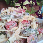 и заправить или йогуртом, или нулевым творожком, смешанными с горчицей.