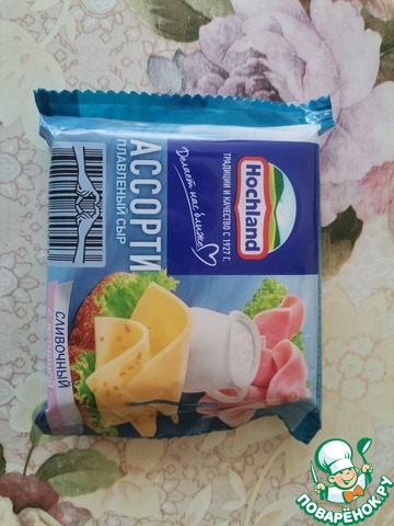 - Сыр плавленый (пластинки от Hochland) — 150 г