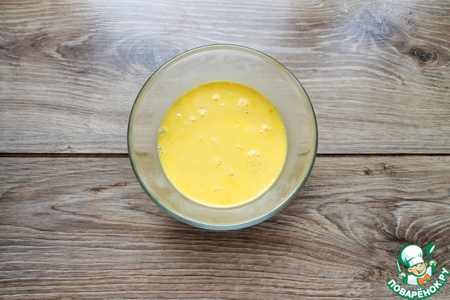 Соедините яйца и сливки, посолите и перемешайте до однородности.