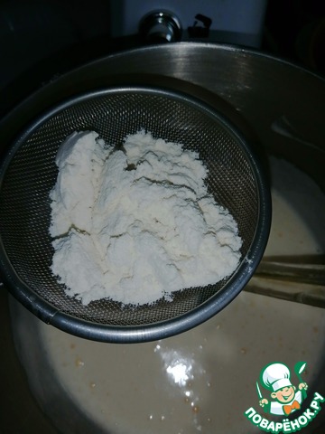 Молоко и масло закипятить и горячими добавить в бисквитное тесто