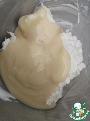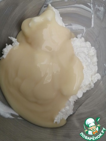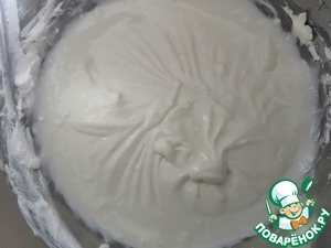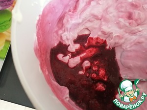 Аккуратно смешать творожную основу со сливками и смородиновым соком