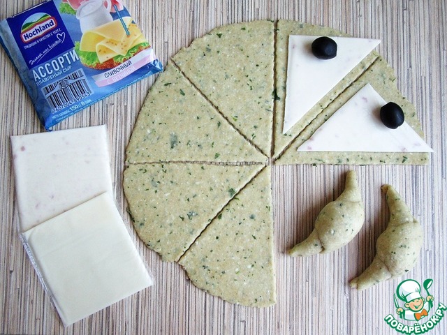 Рецепт «Творожные рогалики с маслинами и сыром»: