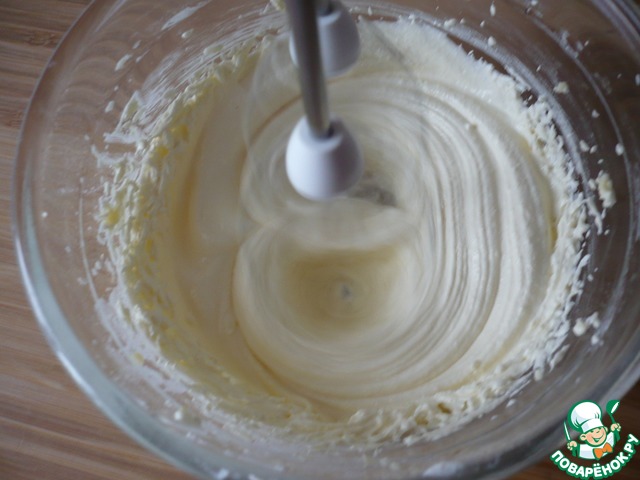 Для крема взбейте сливочное масло комнатной температуры с сахарной пудрой до состояния легкого, пышного крема, 10 минут.