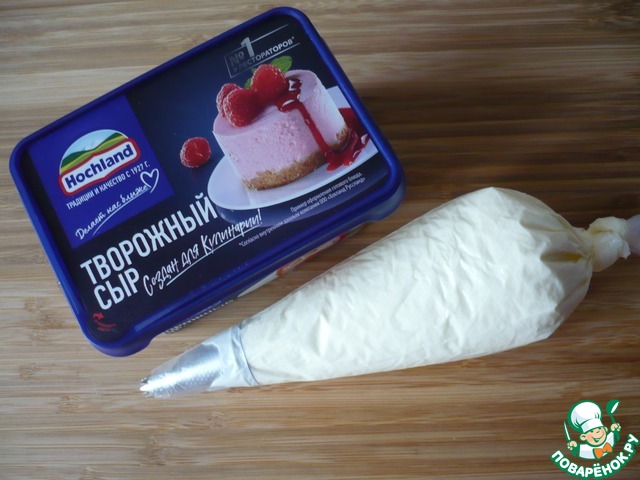 Добавьте творожный сыр ТМ "Hochland" комнатной температуры и ванилин. Снова взбейте, 2 минуты.