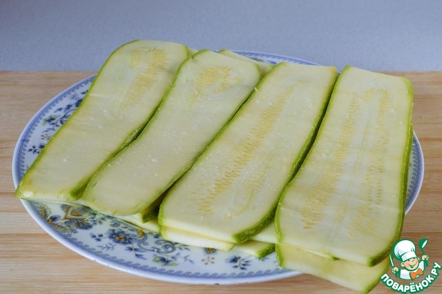 • Кабачки нарезать на слайсы толщиной не более 1,5-2 мм.