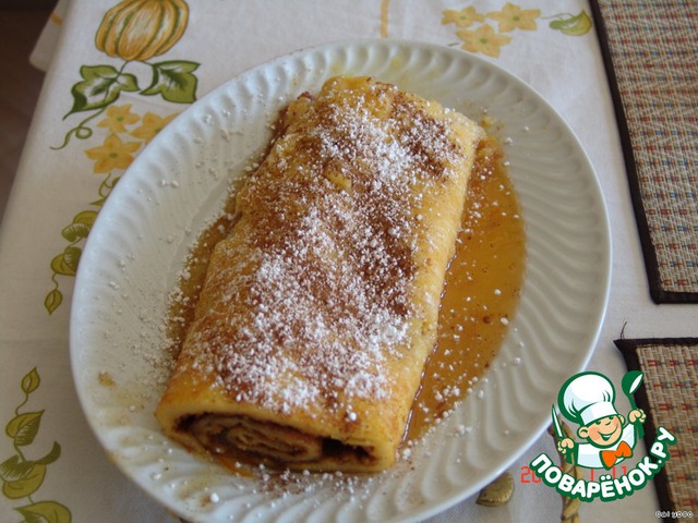Готовый рулет посыпать сахарной пудрой и молотой корицей.