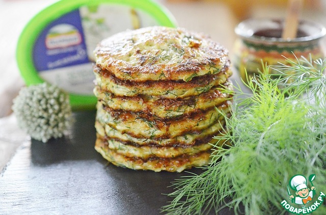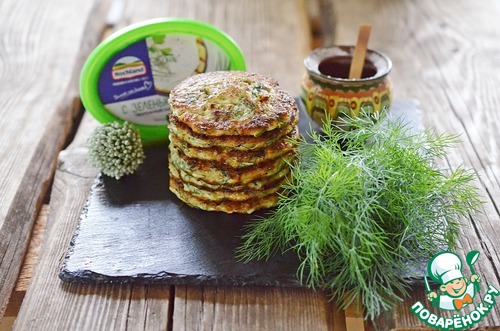 Рецепт «Кабачковые оладьи с творожным сыром»: