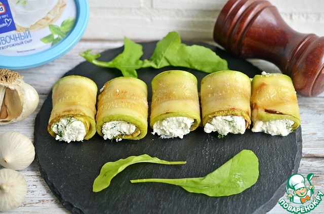 Рецепт «Кабачковые рулетики с творожным сыром»: