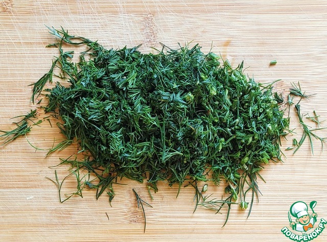 В места разрезов распределить измельченный укроп. Я раскладывала с помощью чайной ложечки.