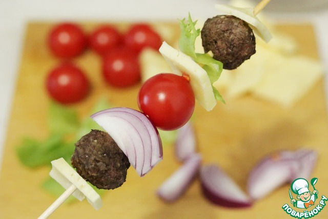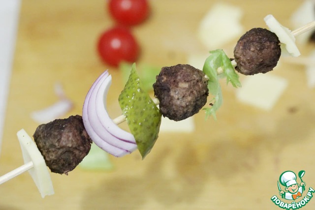 Рецепт «Мини-шашлычки с фрикадельками»: