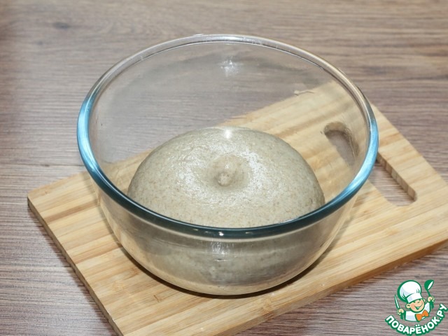 5. Миску и тесто смазываем растительным маслом (0,5 ст. л.), закрываем пленкой и ставим в теплое место для подъема теста в 2,5 раза на 1,5-2 часа.