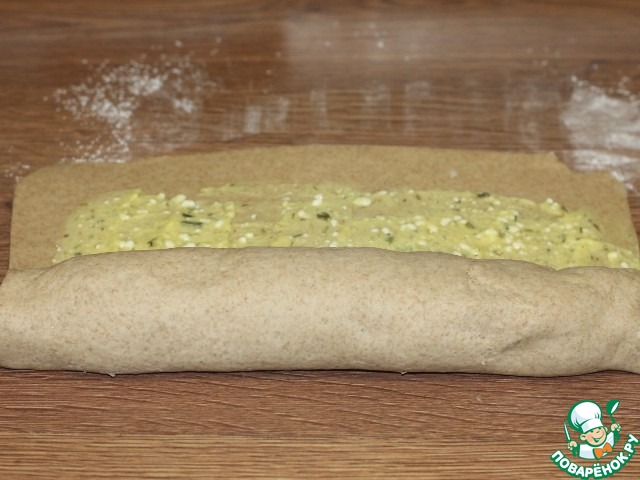 Рецепт «Пшенично-ржаной хлеб с сырной начинкой»: