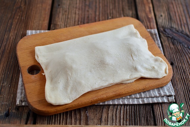 У меня 2 пласта прямоугольного теста. Каждый пласт нужно раскатать по-тоньше.