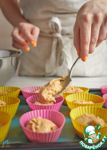 Разложить по формочкам. Выпекать в предварительно разогретой до 135С духовке до готовности. У меня ушло около часа.
