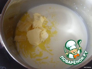 Молоко, масло, ванилин, соль кладём в кастрюльку и ставим на огонь, даём молоку вскипеть.