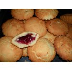Вынимаем из духовки, режем пополам и кладём взбитые сливки (кто с чем их любит - у меня были с клубникой.