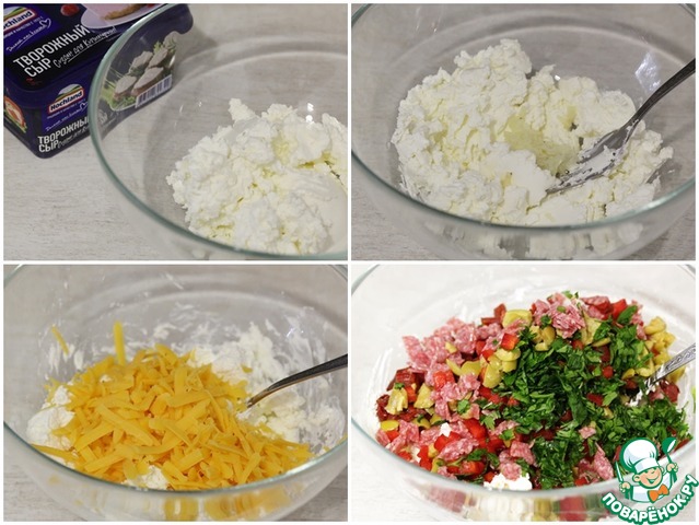Должна получиться вот такая нарядная разноцветная сырная начинка. -