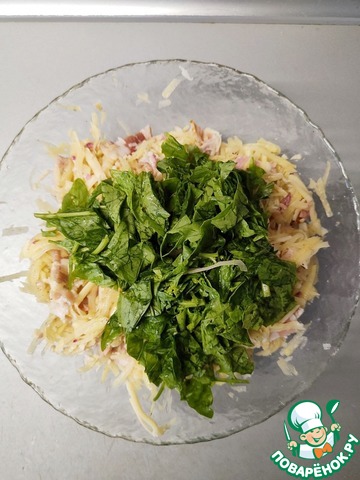 Шпинат здесь не обязателен. Но я добавила. Для самоуспокоения. Вроде калорий меньше, да и полезный. Но вкус он точно не испортит.
